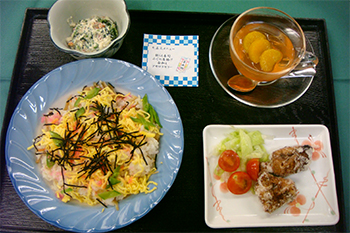 当施設ではリハビリを頑張っておられる患者様が、一日も早く回復されることを願い、安心・安全な食品を使った美味しい手作りのお食事を、症状に合った形態でお届けできるよう努めています。